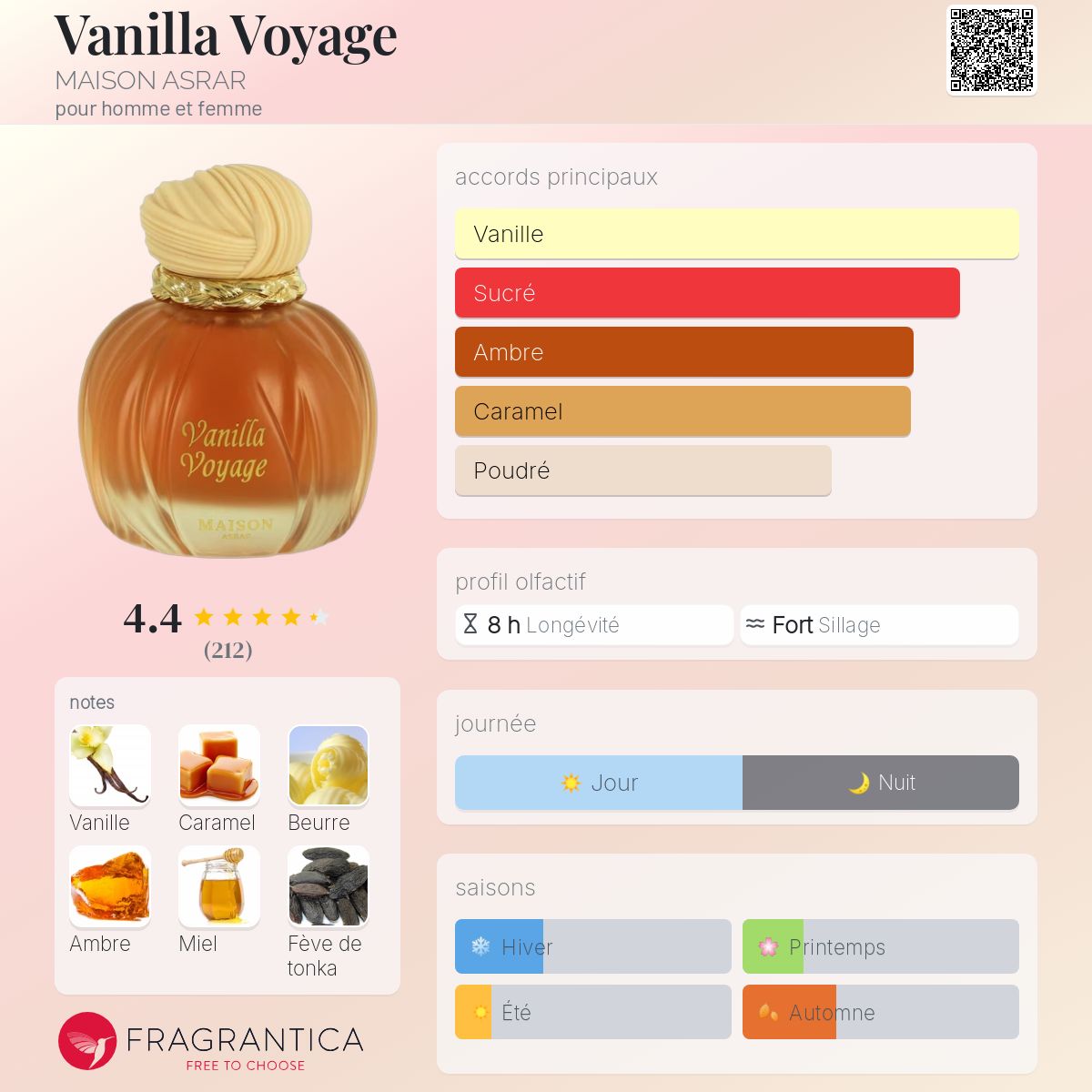 Vanilla Voyage est le choix parfait pour celles qui aiment les parfums doux, féminins et sophistiqués, idéals à porter au quotidien comme lors de moments plus intimes.
